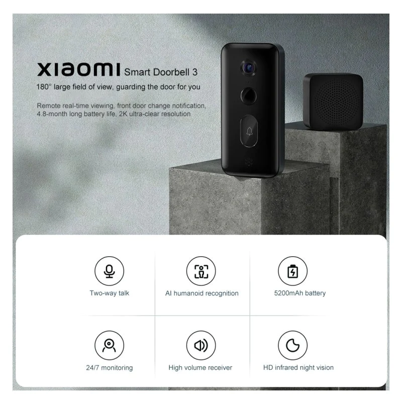 Worried about losing delivered packages or take-outs?24-hour smart motion detectionsAutomatic video recording of movements and notification to your phoneEquipped with human body sensor and AI human shape recognition technology, Xiaomi Smart Doorbell 3 monitors abnormal movements of your doorway, and sends notifications to your smartphone once they are detected.