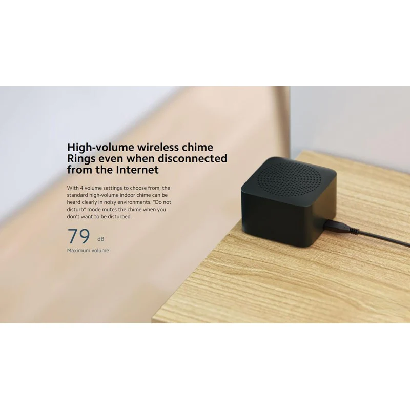 72-hour cloud storageHigh-volume wireless chimeRings even when disconnected from the InternetWith 4 volume settings to choose from, the standard high-volume indoor chime can be heard clearly in noisy environments. “Do not disturb” mode mutes the chime when you don’t want to be disturbed.