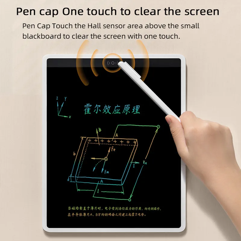 • Pen Cap Touch the Hall sensor area above the small blackboard to clear the screen with one touch