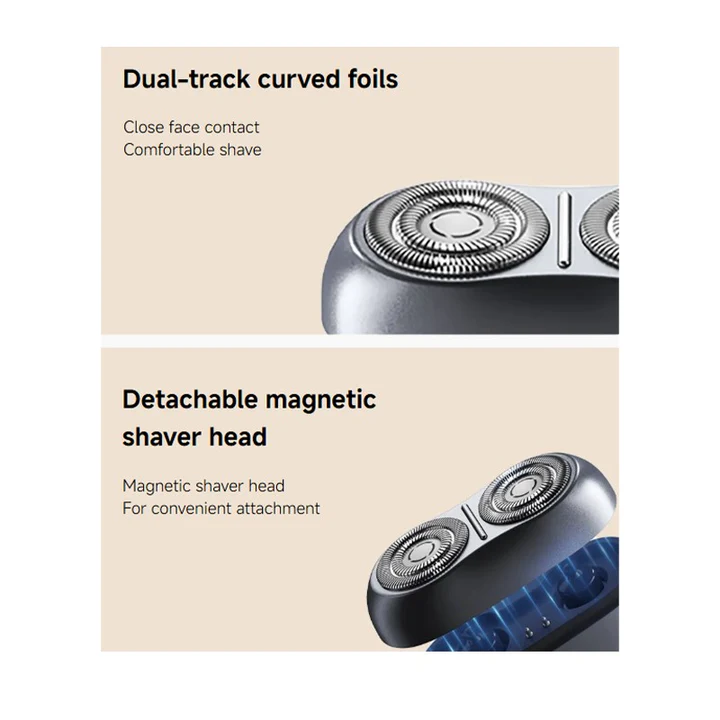 Detachable magnetic shaver head for easy attachment and removal.